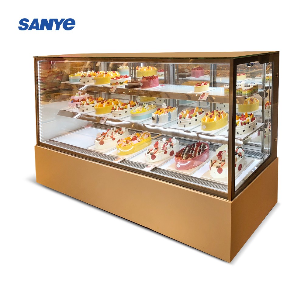 Our cake display cases use high-definition clear glass, which is ideal for displaying cakes and other pastries clearly and attractively. A display case can be a lighted cabinet to make your cakes look more attractive and a refrigerated base to keep them fresh.